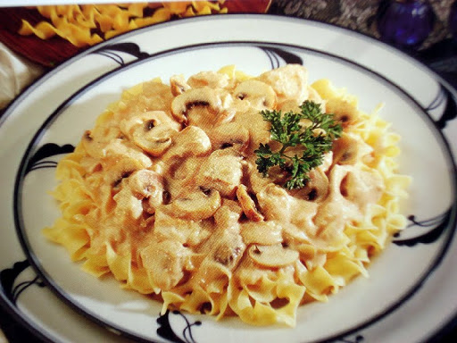 Add mushrooms, onion and garlic. Cook for about 4 min. Remove chicken and vegetables with a slotted spoon