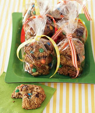 One bite of these cookies and you’ll never go back to the plain oatmeal kind again, given their delightfully chewy texture and rich chunks of chocolate, pecans and plain M&M’s.