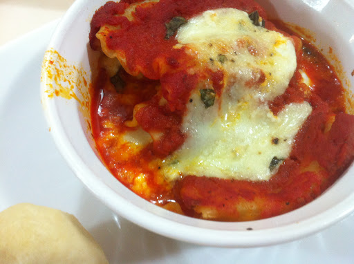 Spread about 1/3 cup of the cheese filling over each noodle; roll up from short side. Place 2 rolls, seam sides down, in each individual au gratin dish or shallow casserole. Top each with about 1/2 cup spaghetti sauce, covering noodles (be careful to cover edges so noodles won't dry out). Bake, uncovered, about 30 minutes or until sauce is bubbly. Garnish with fresh sage sprigs, if desired.