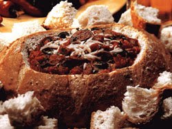 - This inside-out version of our favorite pizza pie makes for the perfect party dipper. Watch their eyes light up when you put out this edible bread bowl filled with zesty warm filling! They won't be able to resist!