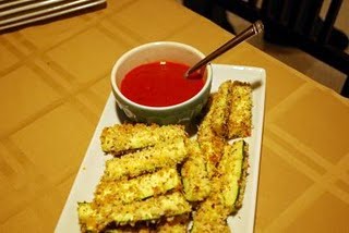 Mix bread crumbs, Parmesan cheese, and oregano in a shallow bowl. Place egg in another shallow bowl. Dip zucchini in the egg, then the bread crumb mixture, place on baking sheet.