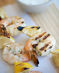 Shrimp and Lemon Skewers with Feta-Dill Sauce