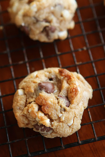 This chewy cinnamon graham cracker cookie is stuffed with mini marshmallow bits that get all perfectly toasted on the outside and impossibly gooey on the inside. They’re also stuffed with mini Hershey’s kisses to complete the S’mores trifecta. Groan. They’re so good.