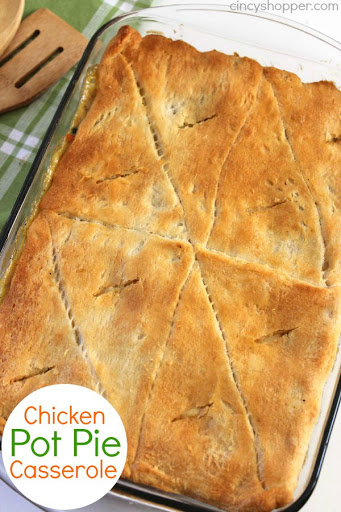 This weekend, a bit of chilly weather hit Cincinnati. We all spent the majority of our weekend in pj’s watching movies. Since we were all in the mood for comfort food, I decided a casserole would make for a great Sunday dinner. I whipped up this Chicken Pot Pie casserole for all of us to enjoy.