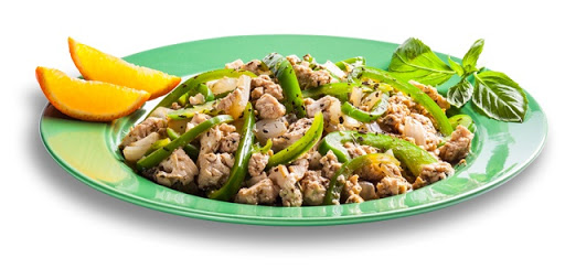 Heat olive oil in a large skillet and add bell pepper, onion and tamari. Sauté for 3 to 4 minutes over medium heat until onions begin to turn translucent.