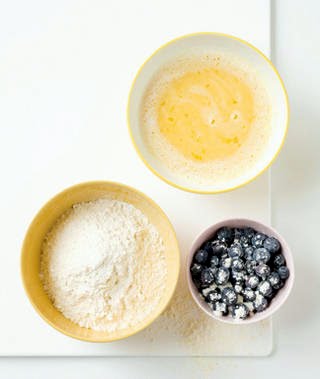 2. Place flour in medium bowl. Remove 1 Tbsp flour and toss with blueberries in a small bowl. To remaining flour, add yellow cornmeal, baking powder and salt; mix well.