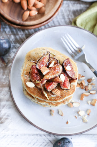 Top Pancakes with caramelized figs, roasted chopped almonds, pure maple syrup, and/or any other toppings you love.