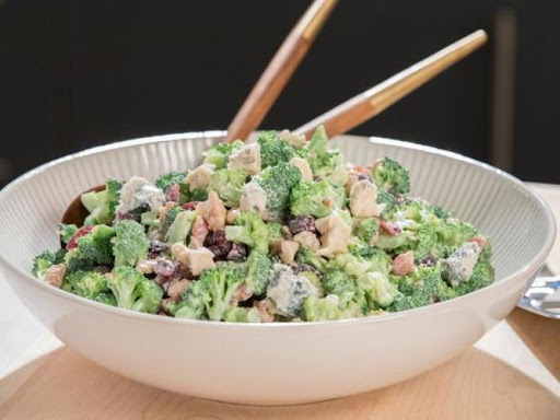 Meanwhile, in a large bowl, use a rubber spatula to mix together the mascarpone, mayonnaise, cider vinegar and salt. Add the broccoli, pancetta, reserved fat, cranberries, walnuts and gorgonzola. Toss well to coat and combine.