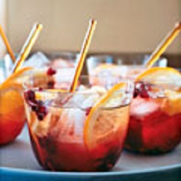 Add the sparkling wine and late-harvest white wine, then add the orange slices, diced pineapple, and pomegranate seeds.
