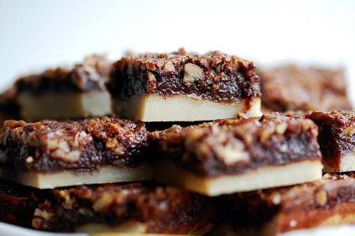 Pour filling onto crust. Bake 20 minutes or until golden brown and set. Cool completly on a wire rack before lifting out foil from dish and slicing into bars.