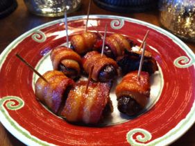 3. Wrap each date with 1/3 slice of bacon; secure with a toothpick, if needed. Roll in brown sugar. Place on wire rack.
