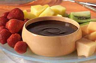 In medium saucepan, combine corn syrup and cream. Bring to boil over medium heat. Remove from heat. Add chocolate. Stir until melted completely. Serve warm as a dip for fruit.