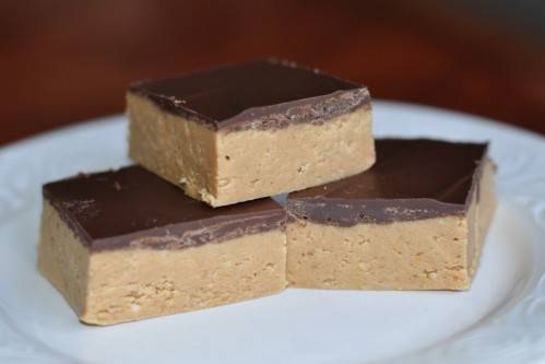 Pour melted butter over powdered sugar. Add peanut butter. Mix together and press into 9 x 13 pan. Mix fast because mixture hardens fast. Melt chocolate and pour over top of peanut butter mixture. Let cool and cut into squares.