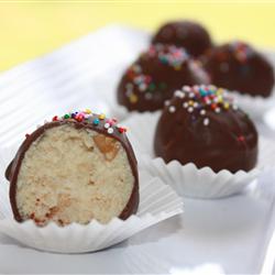 Use a melon baller or small scoop to form balls of the chocolate cake mixture. Dip the balls in chocolate using a toothpick or fork to hold them. Place on waxed paper to set.