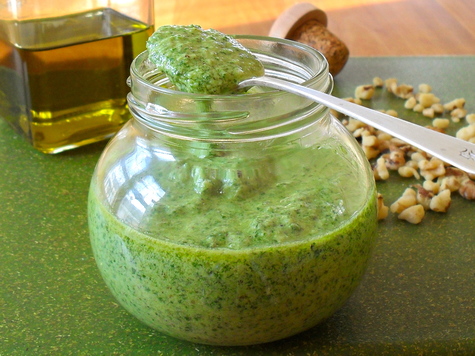 Combine basil, cheese, walnuts, lemon juice, garlic, salt and pepper in food processor; process until pureed, scraping down sides of bowl.
