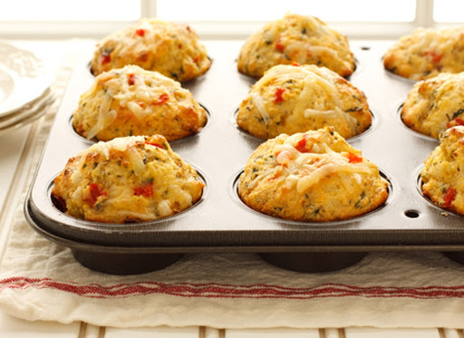 Savory corn muffins are easy to make. Filled with sautéed vegetables, herbs and cheese, these muffins are the perfect side for dinner tonight.