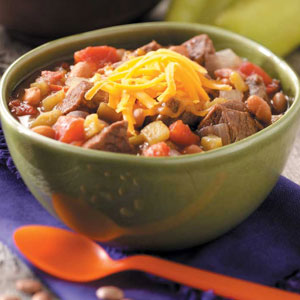 • Combine the beans, tomatoes, chilies, water, bouillon, garlic, sugar, salt if desired and pepper; pour over beef. Cover and cook on low for 6-8 hours or until beef is tender. Sprinkle with cheese if desired. Yield: 8 servings.
