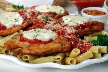 When preparing chicken parmesan, make sure the entire chicken is coated with butter and then with breadcrumbs, and also keep an eye on the oven. You never want to over bake chicken, or it will be dry and tasteless