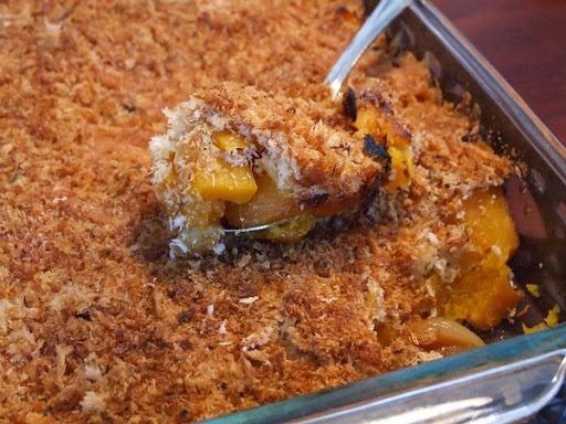 BUTTERNUT SQUASH CHEDDAR GRATIN W/ ROSEMARY BREADCRUMBS