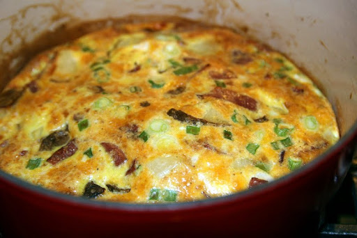 Turn the potato/onion mixture over and cook for 5 minutes more. In a large bowl, whisk the eggs and milk together. Add the egg mixture to the skillet and move them around and under the potatoes to settle them. Transfer the skillet to the oven and bake until golden on top, about 10 to 12 minutes. Scatter the cheese on top, turn the oven off and let sit for another couple of minutes. Remove from the oven and serve.