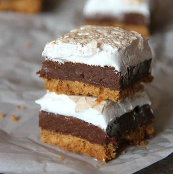 Turn oven on to broil and place pan under broiler for 1 minute or until the top of the marshmallow layer gets lightly golden.