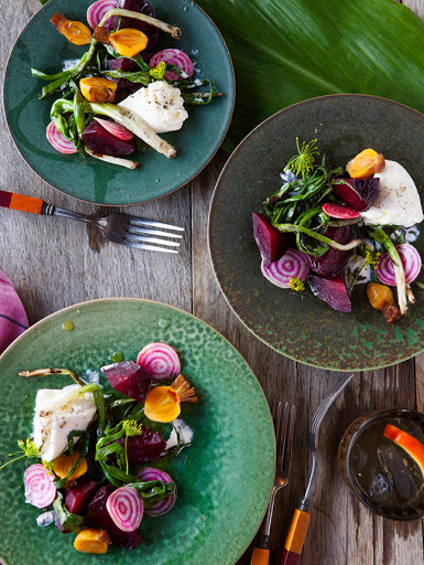 Grilled Beets with Burrata and Poppy Seed Vinaigrette