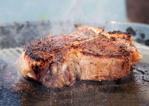 Slate-Grilled Porterhouse, Summer Vegetables, and Sourdough Bread