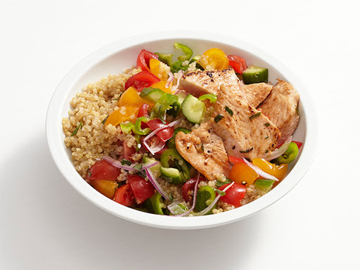 Heat the remaining 1 tablespoon olive oil in a large nonstick skillet over medium-high heat. Working in batches, add the turkey and cook until golden, about 3 minutes per side. Drain on paper towels, then cut into 2-inch pieces. Fluff the quinoa with a fork and divide among bowls. Top with the tomato mixture and turkey.