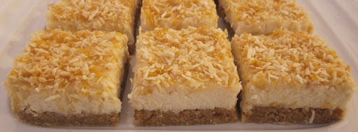 Mix the topping ingredients together in a bowl and sprinkle evenly over the top of the filling and then gently pat in to top. Refrigerate for an hour to set.