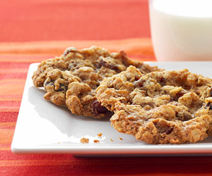 2. In a large mixing bowl beat butter with an electric mixer on medium to high speed for 30 seconds. Add granulated sugar and brown sugar. Beat until combined, scraping sides of bowl occasionally. Beat in eggs and vanilla until combined. Beat in as much of the flour mixture as you can with the mixer. With a wooden spoon, stir in any remaining flour mixture. Stir in wheat cereal, oats, walnuts, and dried fruit.