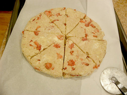 11. Bake the scones until they are golden brown about 18-20 minutes. Let them cool on the baking sheet for a few minutes then carefully slide them on to a wire rack to cool for another 15 minutes before serving.
