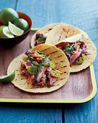 Marinated Skirt Steak Tacos with Pecan-Chipotle Salsa