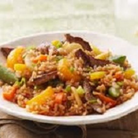 kitchens tipsSPECIAL EXTRAAdd 1/2 tsp. each garlic powder and ground ginger to the browned meat along with the vegetables, broth, dressing, soy sauce and rice. NOTEIf you don't have a wok, you can use a large skillet sprayed with cooking spray instead