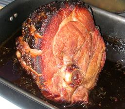 Baste the ham with the whiskey and cola and continue to bake, basting every 15 minutes with the whisky and coke mixture and pan juices, until the ham is cooked through, the skin is crisp and dark, and a meat thermometer registers 165 degrees F, 2 to 2 1/2 hours.