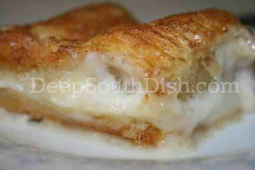 Variations: Experiment with other pie fillings - cherry and blueberry are good substitutes with a plain sprinkling on top of regular granulated sugar instead of the cinnamon sugar. Try this with fresh peaches too! Mary from our Facebook page uses a cooked filling of 2 cups peaches, 1/2 cup sugar, a tablespoon cornstarch, rather than a can of pie filling. Thanks Mary! Can double recipe for an oblong pan.