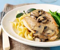 3. Add remaining 1 tablespoon oil and the mushrooms to the skillet. Cook for 5 minutes, stirring occasionally, or until softened and lightly browned. Sprinkle flour over mushrooms; cook 1 minute. Gradually stir in broth. Add dried sage, nutmeg and remaining 1/8 teaspoon each salt and pepper. Simmer for 2 minutes. Add chicken; simmer for 1 to 2 minutes or until heated through.