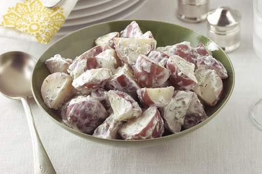It's hard to believe (but true) that the creamy dill sauce for this awesome new potato side dish only requires three ingredients.
