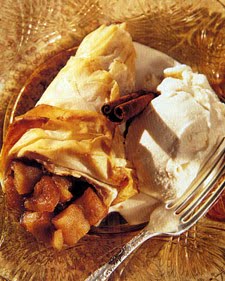 Spoon apple mixture onto ends of strips. Roll into free-form cone shapes, loosely gathering and folding back excess dough.