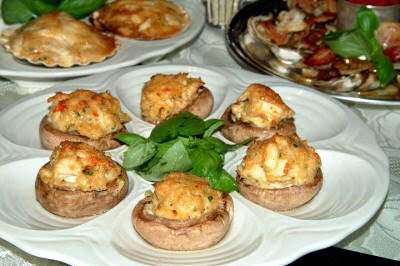 Place small amount of crab mixture on each mushroom, packing securely with fingers.