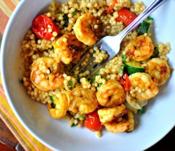 North African Spiced Shrimp + Roasted Summer Vegetable Israeli Couscous