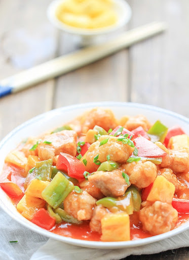 Chinese sweet and sour pork with pineapple is a featured dish from Chinese Cantonese cuisine. With its slightly sour and sweet taste and the fresh fruit flavor, it is mostly loved by people in American and also southern part of China.