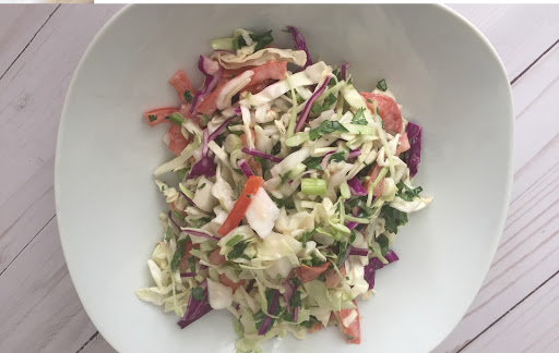 Add to veggies and and stir well. Put in the fridge for at least 2 hours before serving.