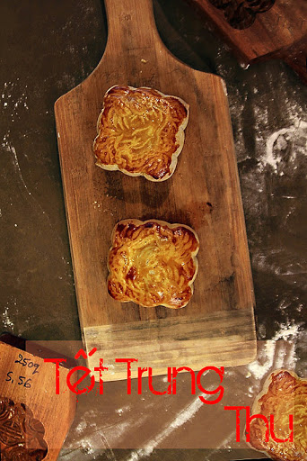 2. spray mooncakes with some water, then apply an eggwash for a glossy