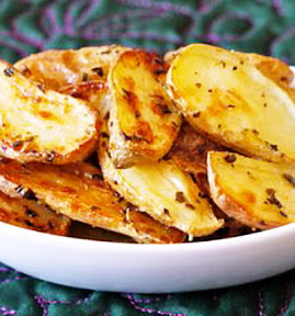 2. Toss the potatoes with the olive oil, salt, garlic powder and herbs on a sheet tray.