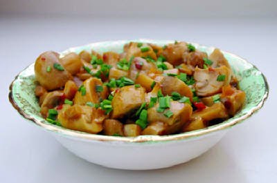 9. Add the wine and reduce until the mushrooms are glazed with the sauce.