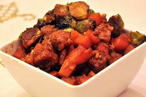 - 1 1/2 lbs sweet potatoes, peeled and sliced in 3/4 inch chunks