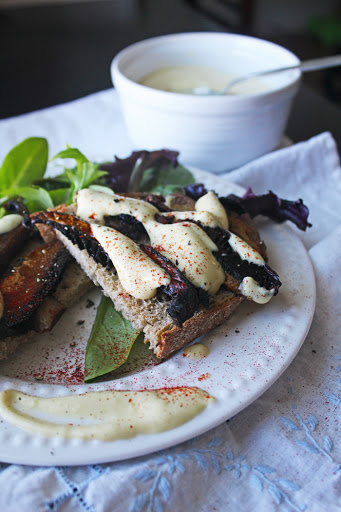 Juhea’s recipe for vegan portobello bacon, slightly modified below. If mushroom bacon isn’t your thing, you can also dress up a tofu scramble with your easy hollandaise sauce or add it to a savory creative breakfast taco.