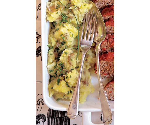 These are true home-style comfort, smashed so they have a rustic chunkiness and mixed with familiar mashed potato flavors—tangy sour cream and chives.
