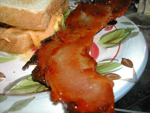 Place a baking rack on a sheet pan and arrange the bacon in 1 layer on the baking rack. Bake for 15 to 20 minutes, until the bacon begins to brown. Remove the pan carefully from the oven; there will be hot grease in the pan! Brush the bacon slices with maple syrup and bake for another 3 to 5 minutes, until the bacon is a warm golden brown. Transfer the bacon to a plate lined with paper towels and serve warm.