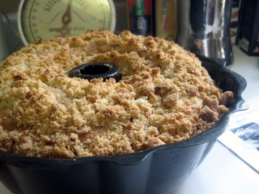 Preheat oven to 350. Combine first 6 ingredients till crumbs are formed. Remove 1/3 cup crumbs. In a separate bowl, mix 2/3 cup crushed pecans and crumbs. Set aside for topping. Add remaining ingredients and mix well. Pour into a greased 8" x 11.5" 2-qt. or 9.5" x 13.5 3-qt. glass baking dish. (Can also use a Bundt or angelfood pan).